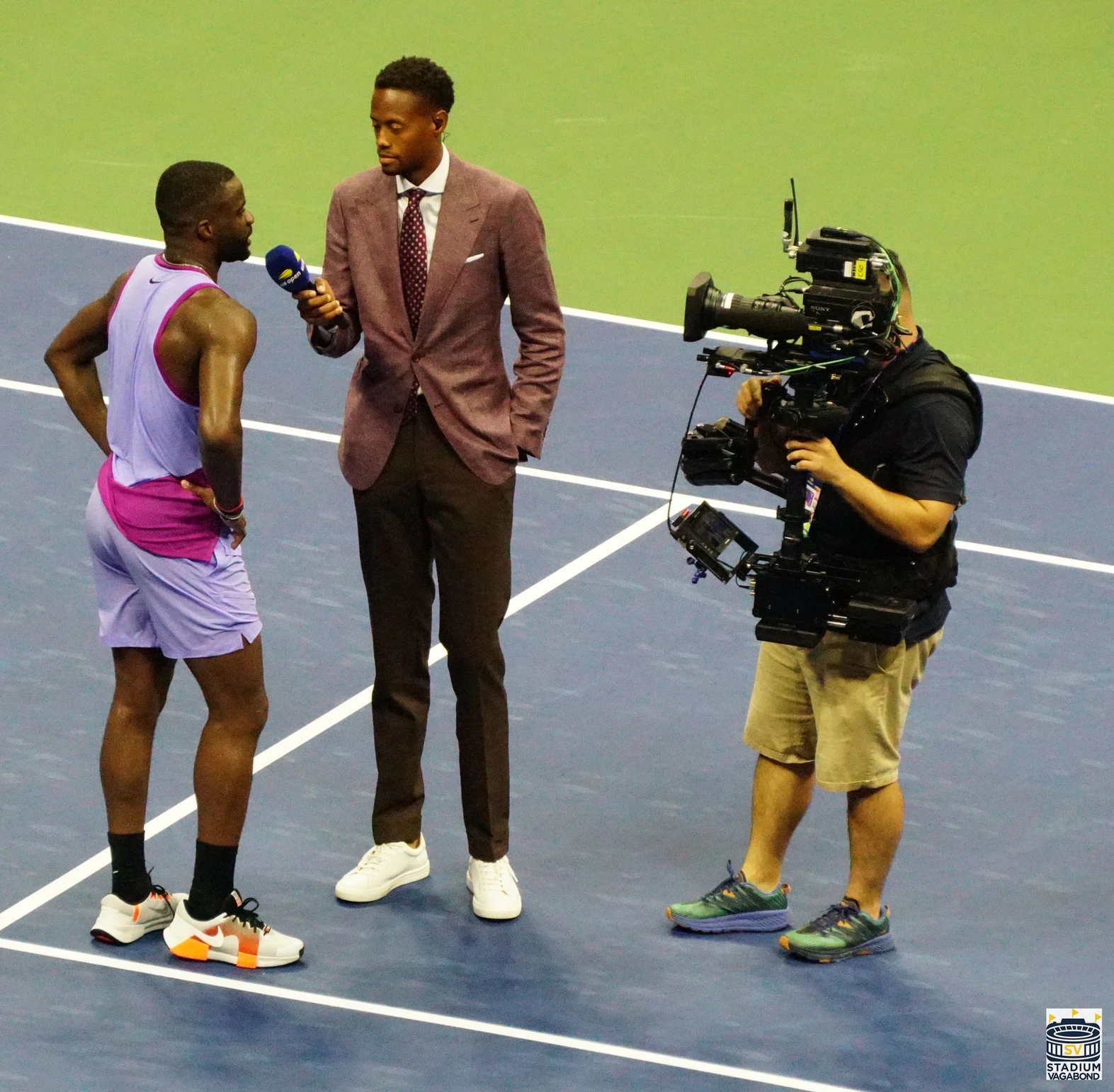 The cavernous Arthur Ashe Stadium still attracts huge crowds for marquee US Open matches, such as the victory by American star Frances Tiafoe shown above. These days, the stadium even features a house DJ to keep the energy high.
