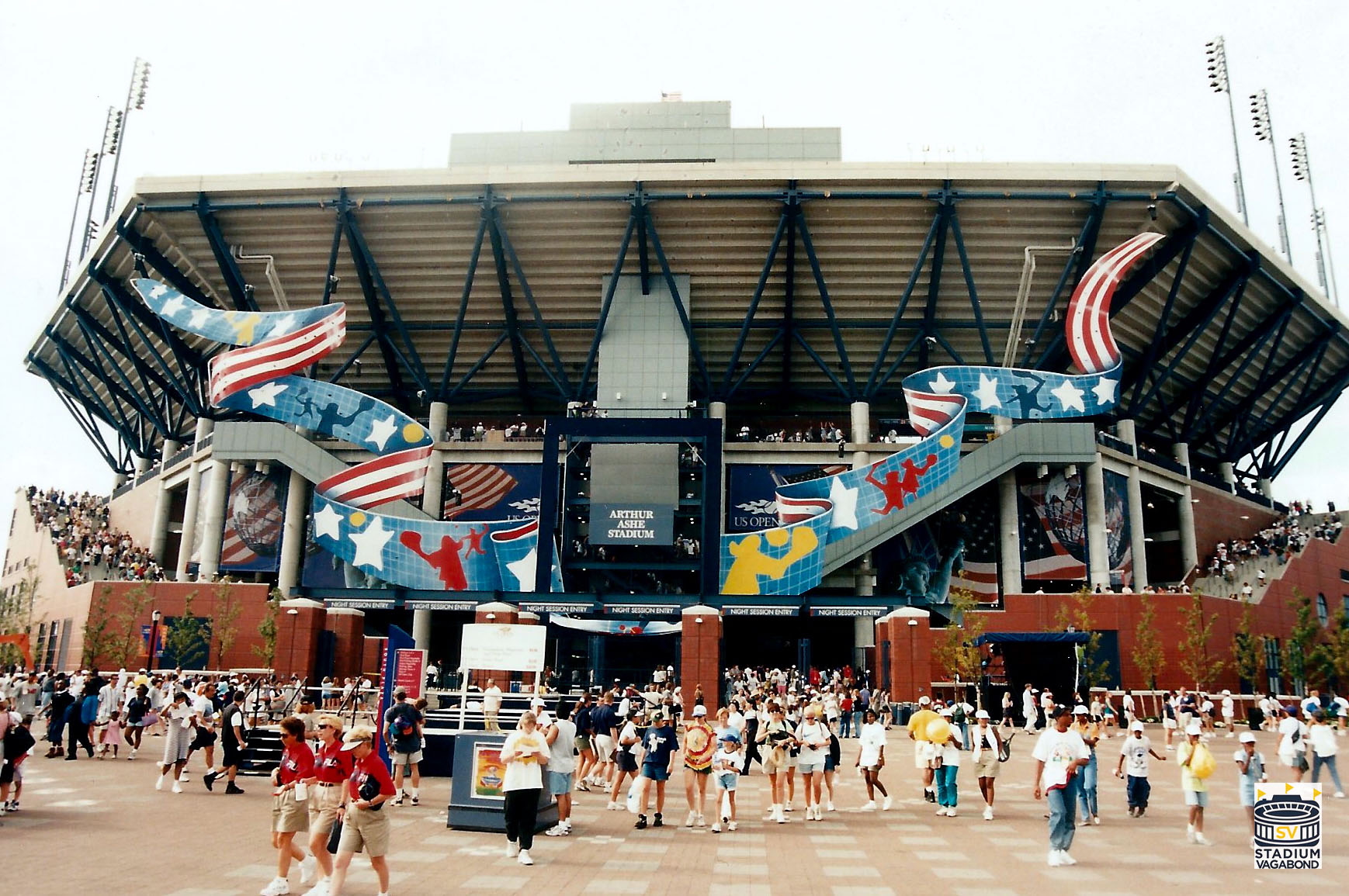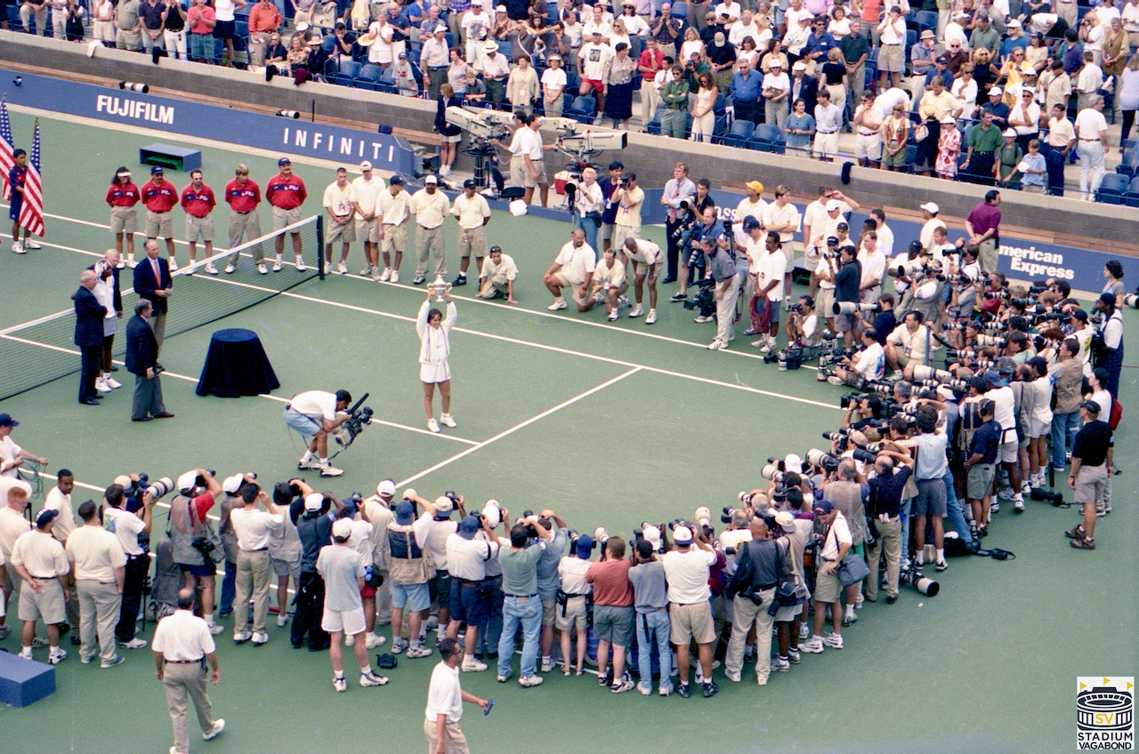 Whatever the reason, I always delight in photographing stadiums over time and comparing how they have changed. Last year, I had the privilege of returning to the US Open tennis tournament for the first time since my initial visit 27 years earlier. Unsurprisingly, the Billie Jean King Tennis Center in Flushing Meadows in Corona Park in Queens, New York had changed dramatically since it opened in August of 1997, as revealed in my photos from both tournaments. Unsurprisingly, the USTA Billie Jean King National Tennis Center in Flushing Meadows–Corona Park, Queens, New York, had changed dramatically since Arthur Ashe Stadium opened in August 1997, as revealed in my photos from both tournaments