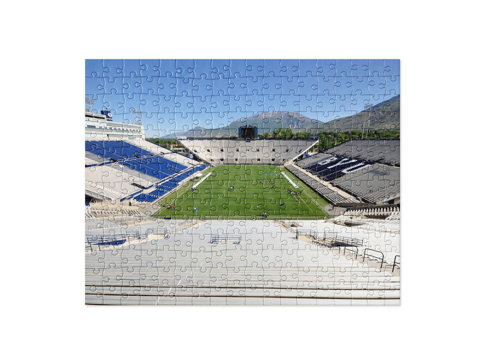 Piece together the excitement of the BYU Cougars’ 2013 season with this engaging puzzle featuring LaVell Edwards Stadium on game day. Perfect for passionate Cougars fans, college football enthusiasts, sports photography lovers, memorabilia collectors, and puzzle lovers, this high-quality jigsaw captures the energy and tradition of BYU football. Whether you're looking for a fun challenge, a unique sports gift, or a new addition to your memorabilia collection, this LaVell Edwards Stadium puzzle is a must-have for every dedicated BYU supporter!